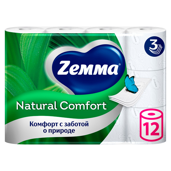Туалетная бумага Zemma Natural Comfort 3 слоя (12 шт) купить с бесплатной доставкой по Москве и МО. Заказать на дом или в офис можно через сайт, мобильное приложение Vodovoz.ru или по телефону. Принимаем заказы 24/7. Доставка осуществляется в удобное для Вас время.