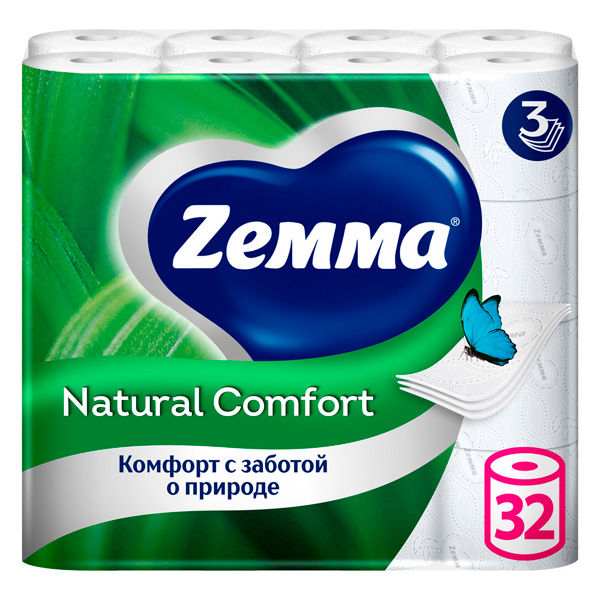 Туалетная бумага Zemma Natural Comfort 3 слоя (32 шт)
