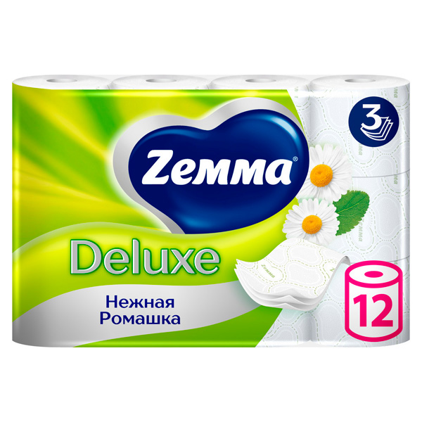 Туалетная бумага Zemma Deluxe ромашка 3 слоя (12шт)