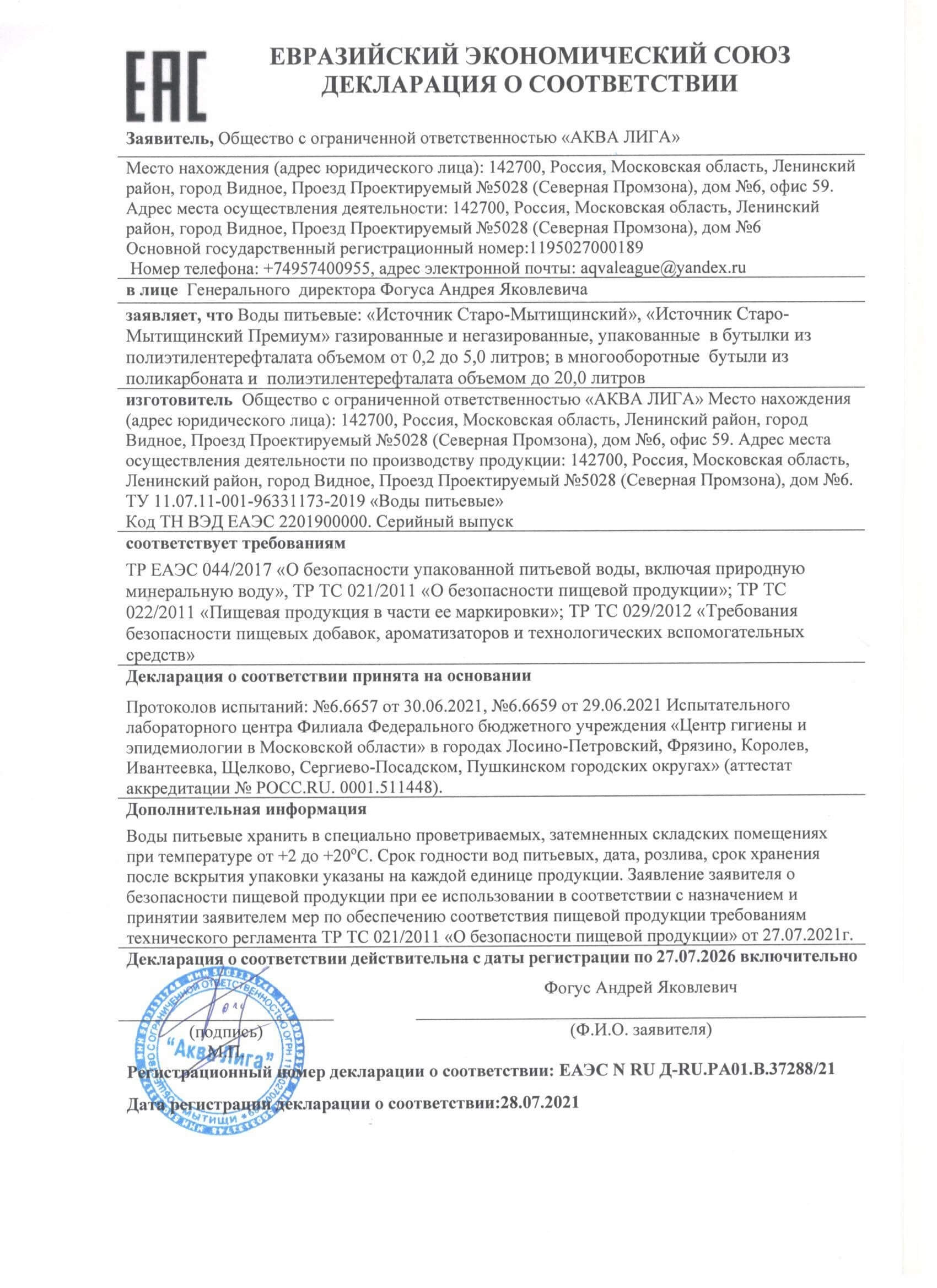 По результатам лабораторных исследований, питьевая вода «Старо-Мытищинский Источник» прошла проверку на соответствие требованиям качества и безопасности пищевой продукции. В процессе производства вода проходит многоступенчатую фильтрацию, которая позволяет сохранить все полезные природные свойства.