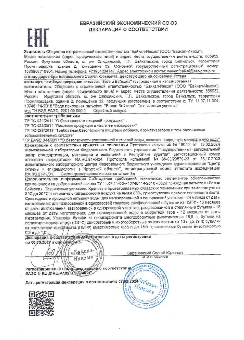 По результатам лабораторных исследований, питьевая вода «Волна Байкала» прошла проверку на соответствие требованиям качества и безопасности пищевой продукции.