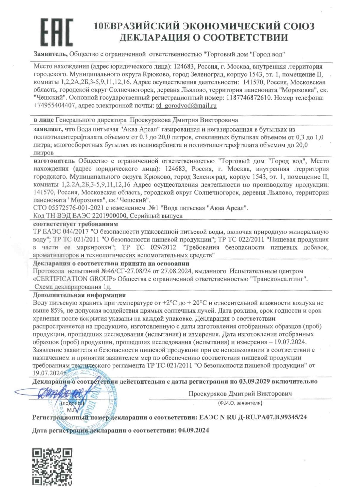 «Аква Ареал» – питьевая вода, которая идеально подходит для всей семьи. Её сбалансированный состав обеспечивает организм суточной нормой полезных макро- и микроэлементов, помогает поддерживать водно-солевой баланс в течение дня.