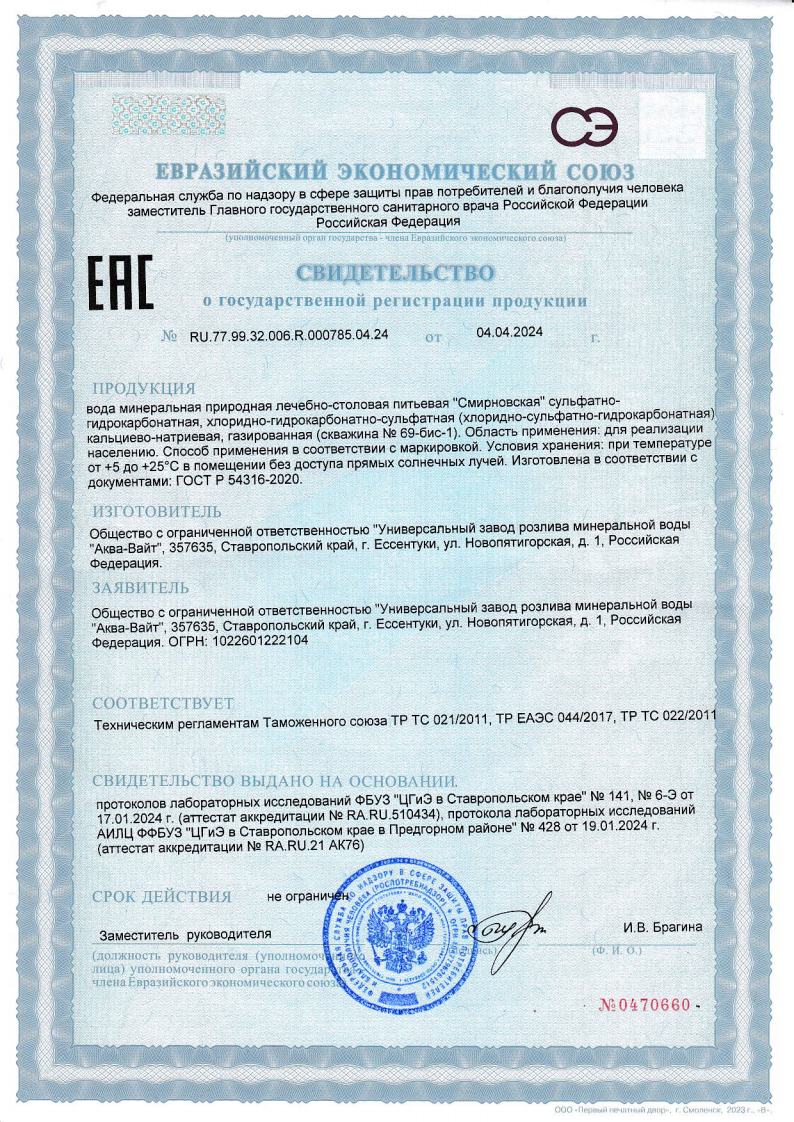 ООО "УНИВЕРСАЛЬНЫЙ ЗАВОД РОЗЛИВА МИНЕРАЛЬНОЙ ВОДЫ «АКВА-ВАЙТ» |