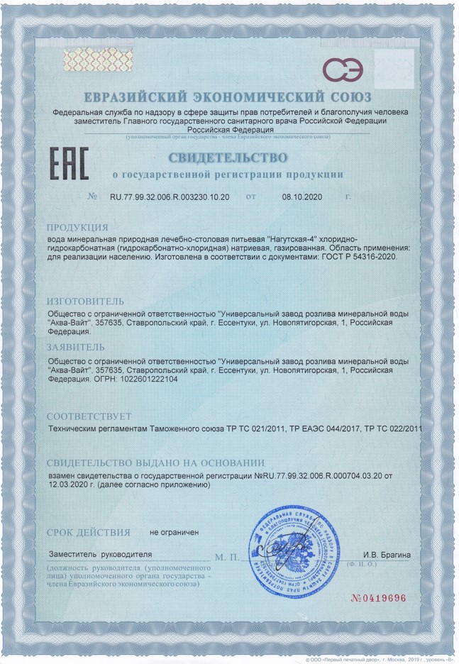 ООО "УНИВЕРСАЛЬНЫЙ ЗАВОД РОЗЛИВА МИНЕРАЛЬНОЙ ВОДЫ «АКВА-ВАЙТ» |