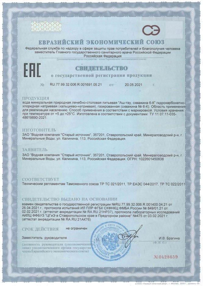 Лечебно-столовая минеральная вода Аш-Тау образуется на глубине 1502м в природном термальном месторождении. Нагреваясь до температуры более 80С в недрах земли, вода становится микробиологически практически стерильной. На пути к поверхности земли Аш-Тау проходит через мощный вулканический фильтр, минерализуется, обретая удивительный вкус и целебные свойства.