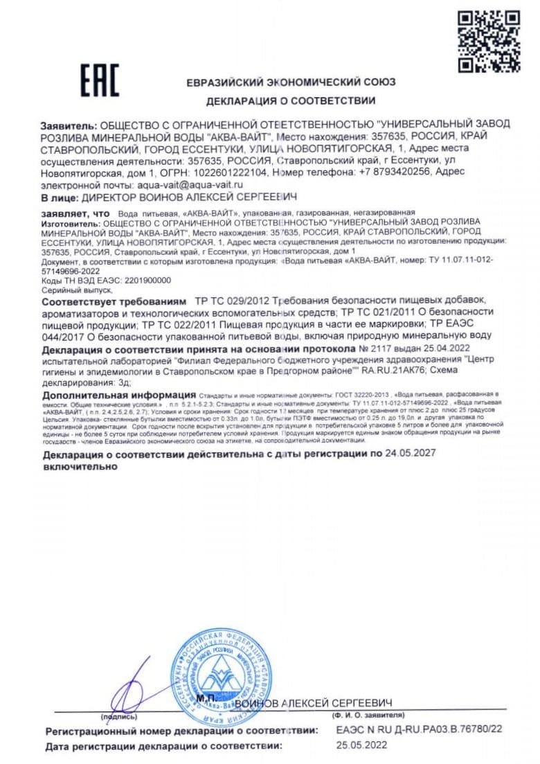 ООО "УНИВЕРСАЛЬНЫЙ ЗАВОД РОЗЛИВА МИНЕРАЛЬНОЙ ВОДЫ «АКВА-ВАЙТ» |