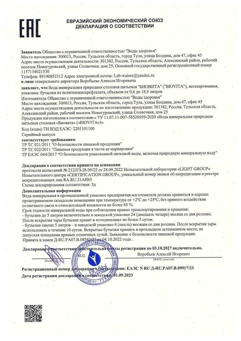 «Биовита» – природная минеральная вода, которая по своему составу относится к гидрокарбонатным магниево-кальциевым структурированным водам.