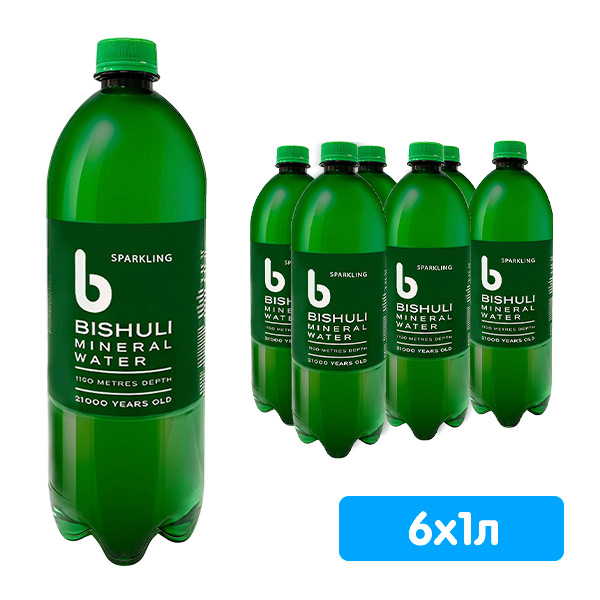 Вода минеральная лечебно-столовая Бишули 1 литр, газ, пэт, 6 шт. в уп.