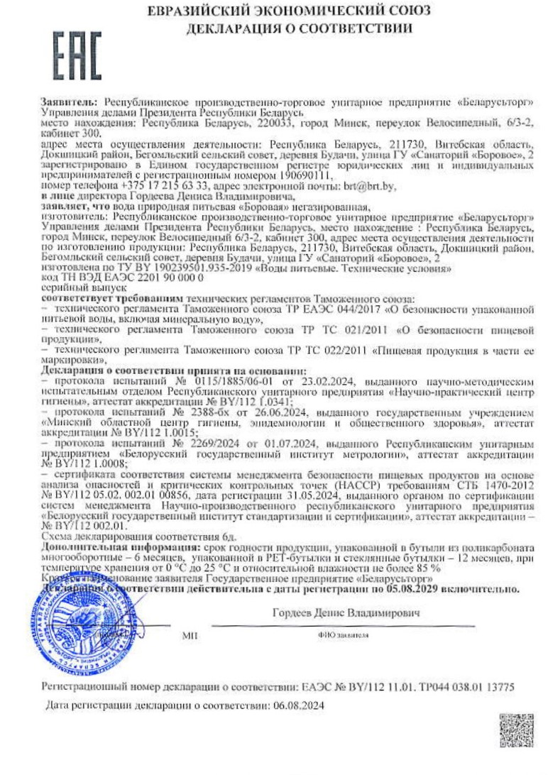 Уникальность питьевой воды «БОРОВАЯ» заключается в практически полном отсутствии в ней железа, а содержание солей и других химических веществ настолько низкое, что в процессе производства воду не нужно подвергать глубокой очистке. Отсутствие добавок и дополнительного воздействия позволяет полностью сохранить природный минеральный состав питьевой воды «Боровая».