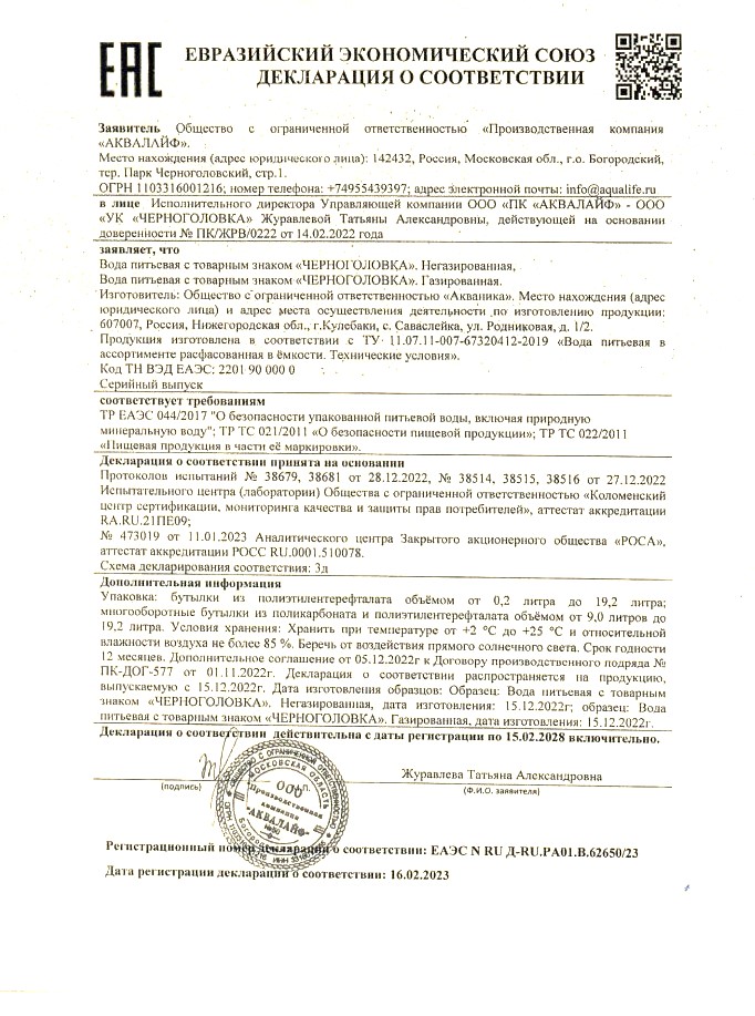 Природная питьевая вода Черноголовкая рекомендована для ежедневного потребления ВНИИ экологии человека и гигиена окружающей среды им. Сысина.