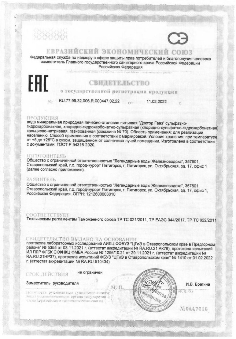 Вода Д.Р. Целебнов (Доктор Гааз) 1.5 литра, газ, пэт, 6 шт. в уп.