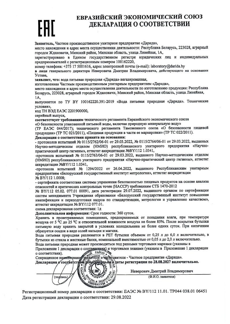 Дарида Your Water – это питьевая вода с природного источника глубиной 266 м. с содержанием природных минералов кальций, магний, калий и кислорода.