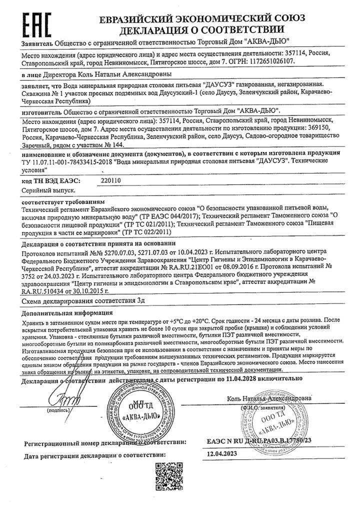 Вода Dausuz 0.33 литра, газ, пэт, 20 шт. в уп. купить с доставкой по Москве и МО. Заказать на дом или в офис можно через сайт, мобильное приложение Vodovoz.ru или по телефону. Принимаем заказы 24/7. Доставка осуществляется в удобное для Вас время.