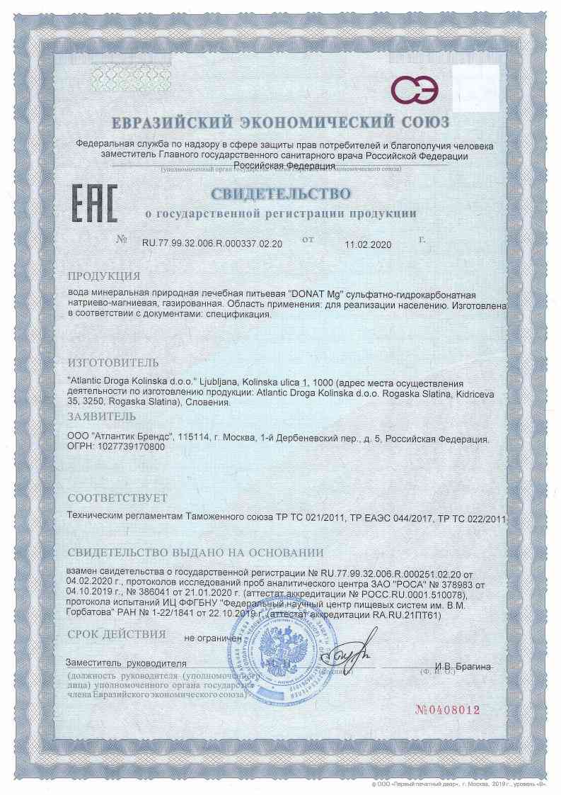 Минеральная лечебная вода «Донат» – особенный источник магния из словенской Рогашки Слатины, глубина которого составляет более 600 метров, из места, известного целебными свойствами своих вод с начала XII века.