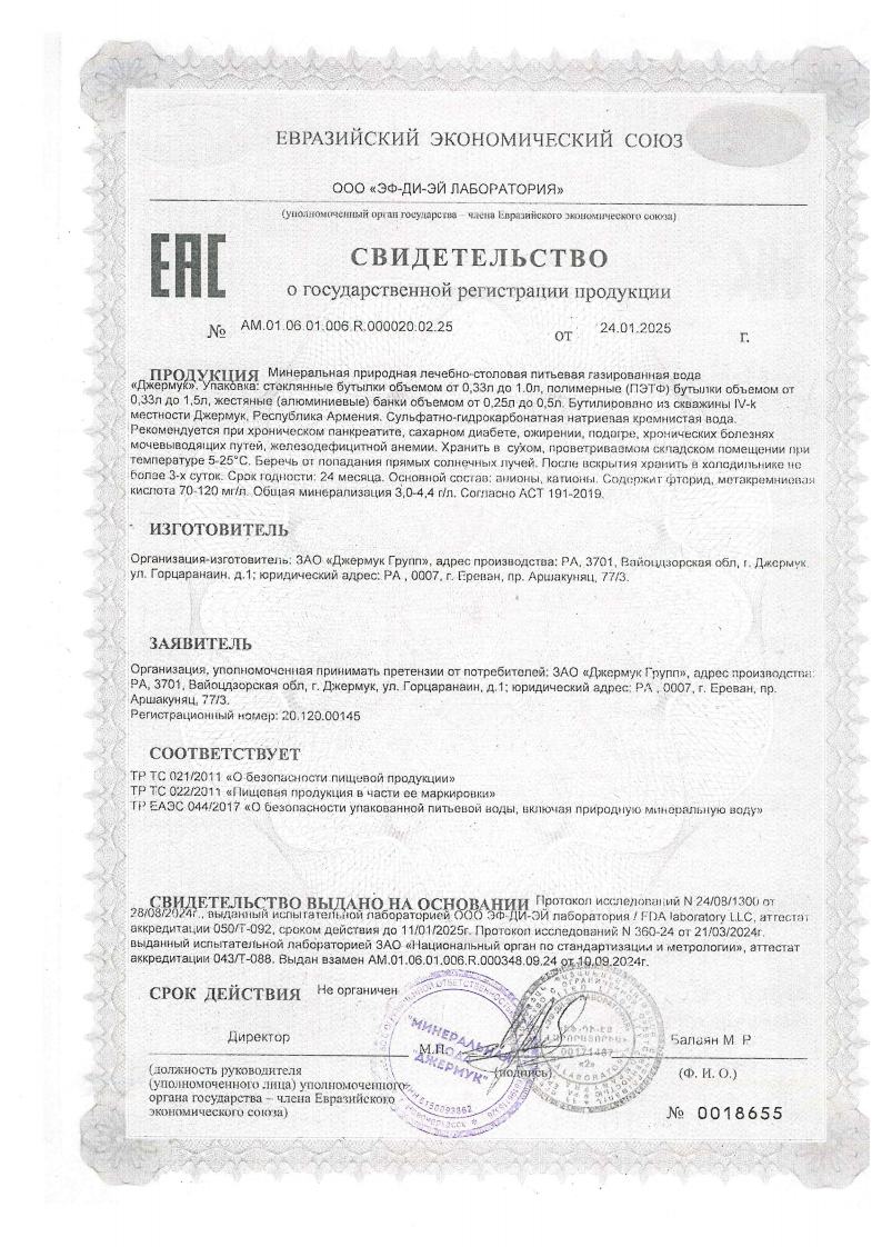 "Джермук" рекомендуется для профилактики и лечения желудочно кишечного тракта (язвенная болезнь желудка и 12-перстной кишки, гастриты), воспалительных заболеваний печени, желчного пузыря, поджелудочной железы и периферической нервной системы, нарушений обменных процессов (сахарный диабет, мочекислый диатез), гинекологических заболеваний.