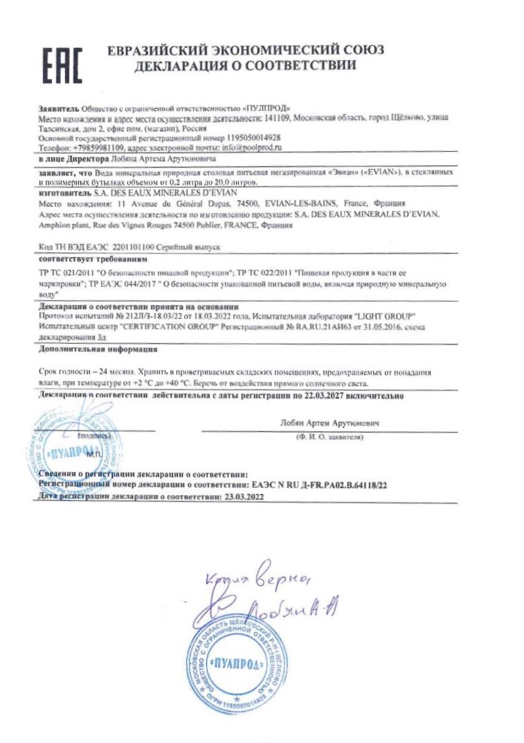 На северных склонах французских Альп, в мире первозданной природы, рождается самая известная минеральная вода — «Эвиан» («Evian»). Прежде чем попасть к нам, она проходит долгий путь сквозь горные породы, обогащаясь естественными минеральными солями и приобретая кристальную чистоту.