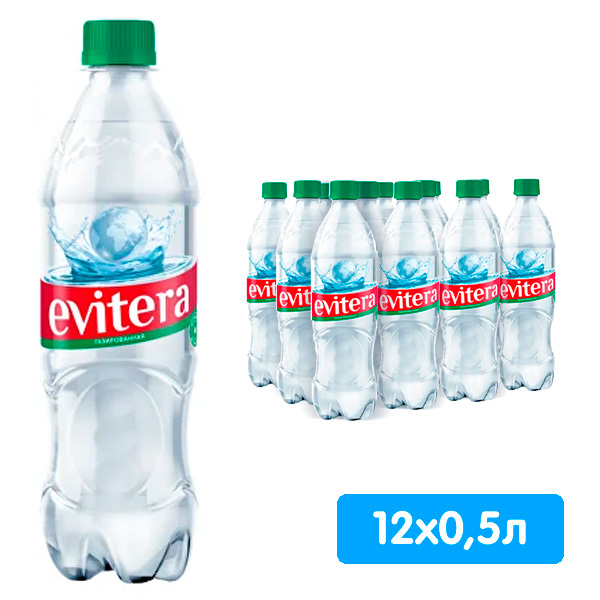 Вода Evitera питьевая 0.5 литра, газ, пэт, 12 шт. в уп.