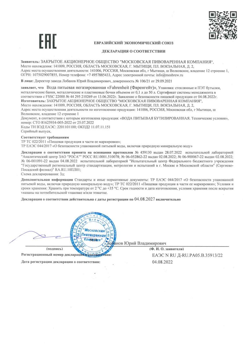 Fahrenheit — правильная вода на каждый день.