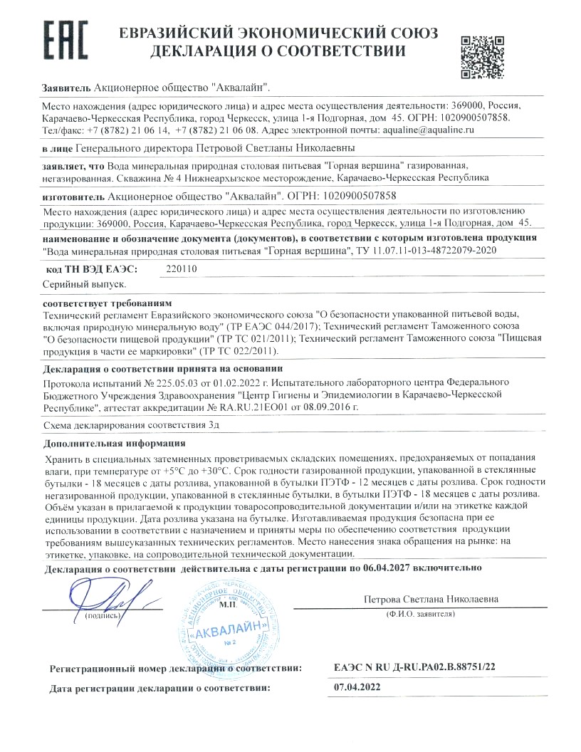 Минеральная питьевая вода Горная вершина добывается в п.Нижний Архыз Карачаево-Черкесской республики, в экологически чистом месте – на границе с Архызским участком Тебердинского биосферного государственного заповедника.