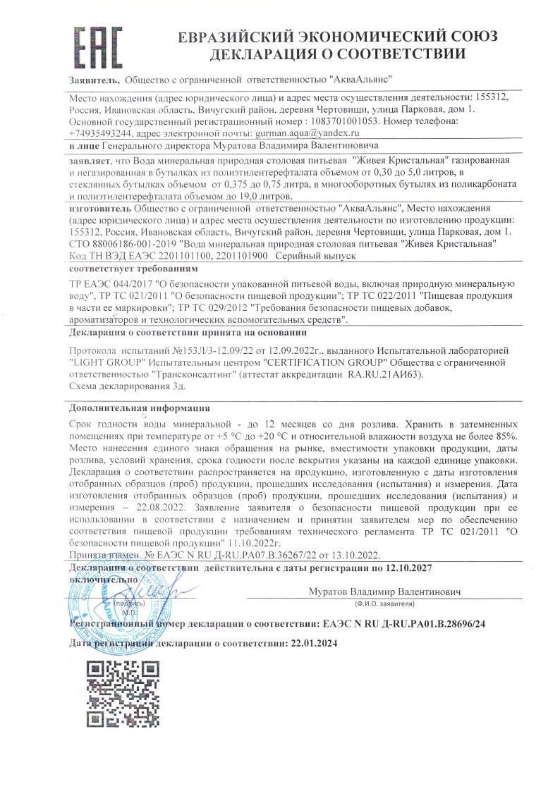 Уникальная по составу и структуре природная минеральная вода «JEVEA Crystalnaya» («Живея Кристальная») добывается из подземного карстового озера, образовавшегося в ледниковый период на территории нынешней Ивановской области.