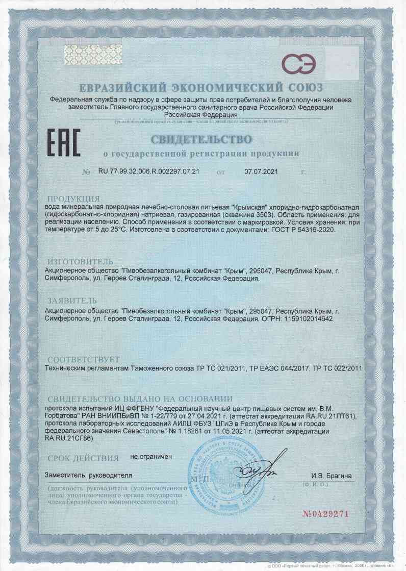 АО «ПИВОБЕЗАЛКОГОЛЬНЫЙ КОМБИНАТ «КРЫМ» |