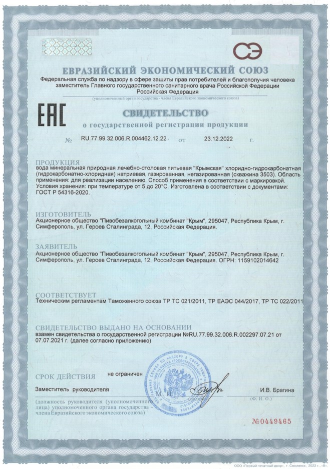 АО «ПИВОБЕЗАЛКОГОЛЬНЫЙ КОМБИНАТ «КРЫМ» |