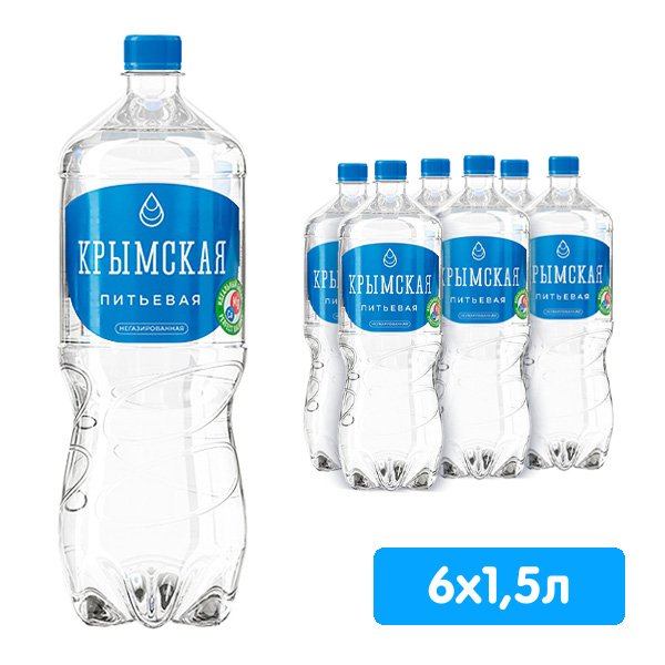 Вода Крымская питьевая 1.5 литра, без газа, пэт, 6 шт. в уп. купить с доставкой по Москве и МО. Заказать на дом или в офис можно через сайт, мобильное приложение Vodovoz.ru или по телефону. Принимаем заказы 24/7. Доставка осуществляется в удобное для Вас время.