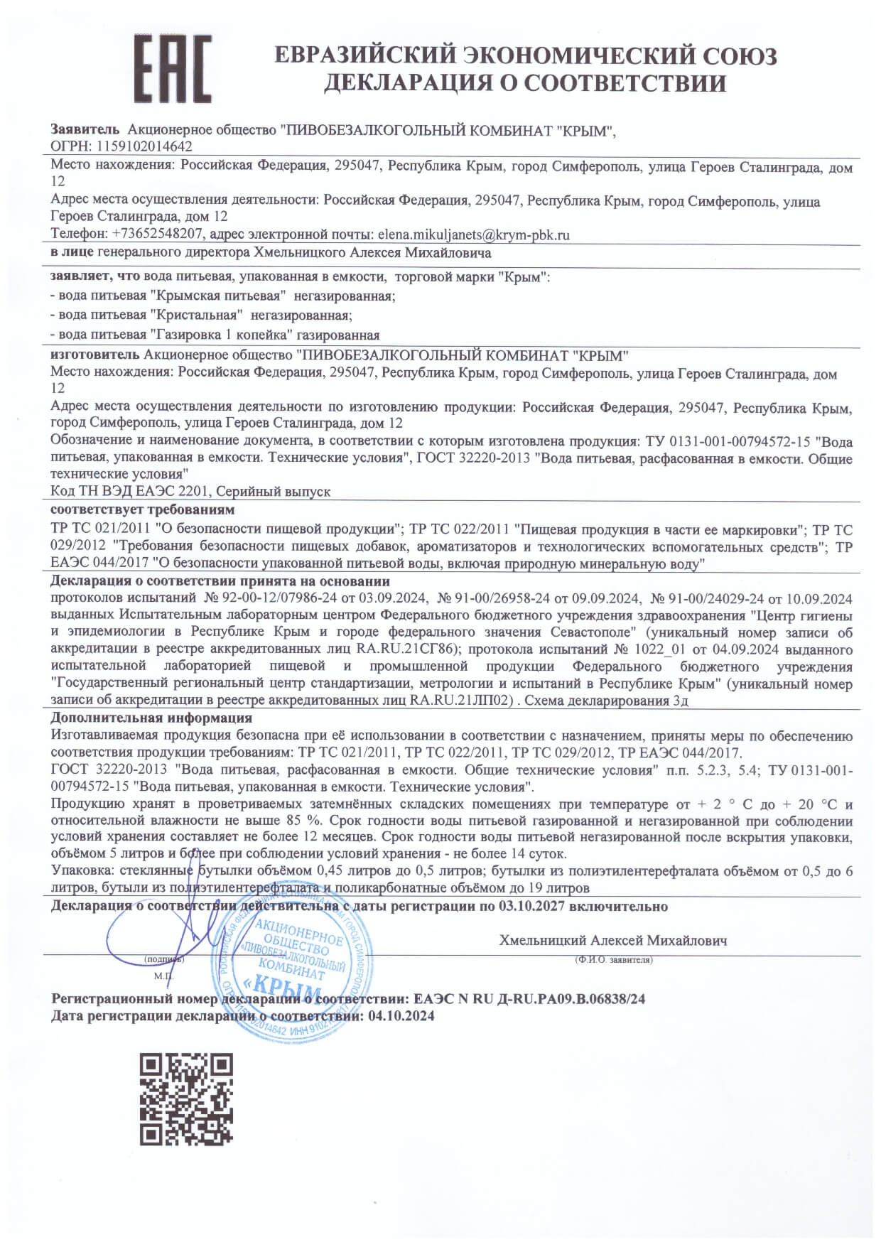 АО «ПИВОБЕЗАЛКОГОЛЬНЫЙ КОМБИНАТ «КРЫМ» |