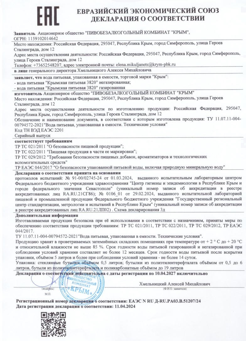 АО «ПИВОБЕЗАЛКОГОЛЬНЫЙ КОМБИНАТ «КРЫМ» |
