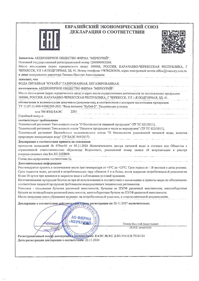 Согласно ТУ9185-008-02701706-05 «Кубай» является природной живой водой, которая дарит людям всю пользу горного солнца и минералов.
