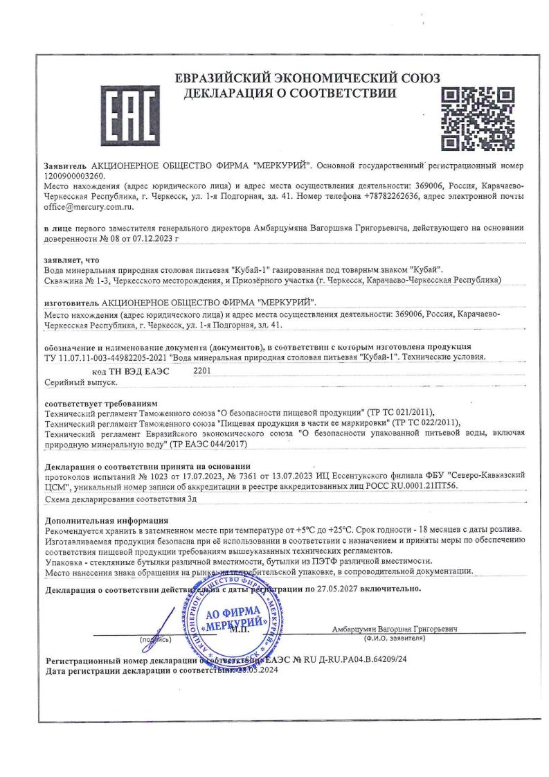 Питьевая вода «Кубай» рекомендована к ежедневному употреблению, ее состав полностью соответствует всем требованиям ВОЗ.
