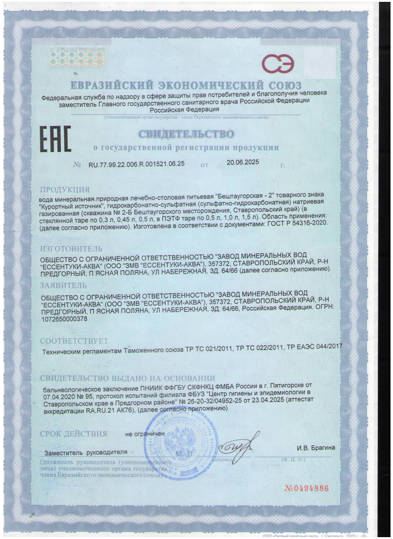 Вода добывается из скважины №2-Б Бештаугорского месторождения Ставропольский край.