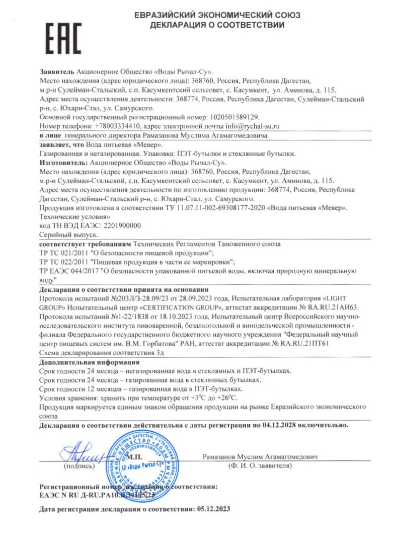 Минеральная вода Mever – это вода из подземного озера в экологически чистых, заповедных горах Дагестана. Именно природное происхождение воды MEVER обеспечило ее уникальный химический состав, наполнило воду полезными для организма человека микроэлементами и минералами. Мы бережно сохранили эти свойства для Вас. Каждый день минеральная вода MEVER готова поддержать Вас в высоком темпе современной жизни, укрепить Ваше самочувствие, тонус и уверенность в своих силах.