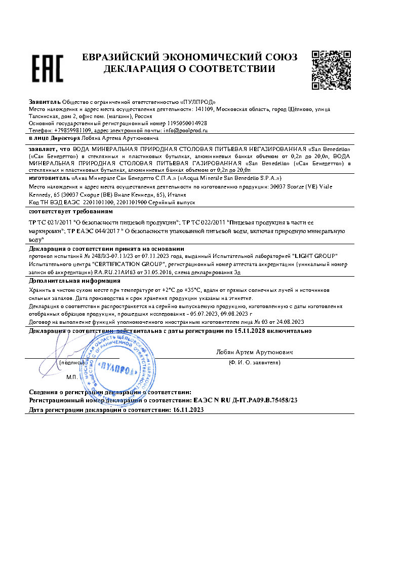«Аква Минерале Сан Бенедетто С.П.А.» |