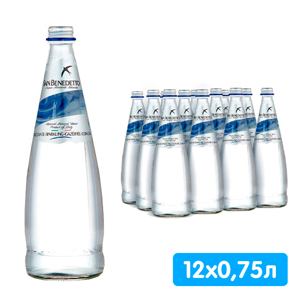 Вода San Benedetto 0.75 литра, газ, стекло, 12 шт. в уп.