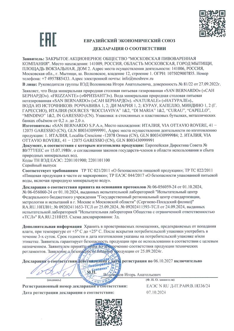 Источник San Bernardo расположен в сердце итальянских Альп на высоте 1300 метров над уровнем моря. Благодаря географическому расположению источника минеральный состав San Bernardo всегда сбалансирован и имеет нейтральный PH. Это делает воду San Bernardo очень легкой. Вода San Bernardo отличается низким содержанием натрия, калия и магния, а также низкой минерализацией.