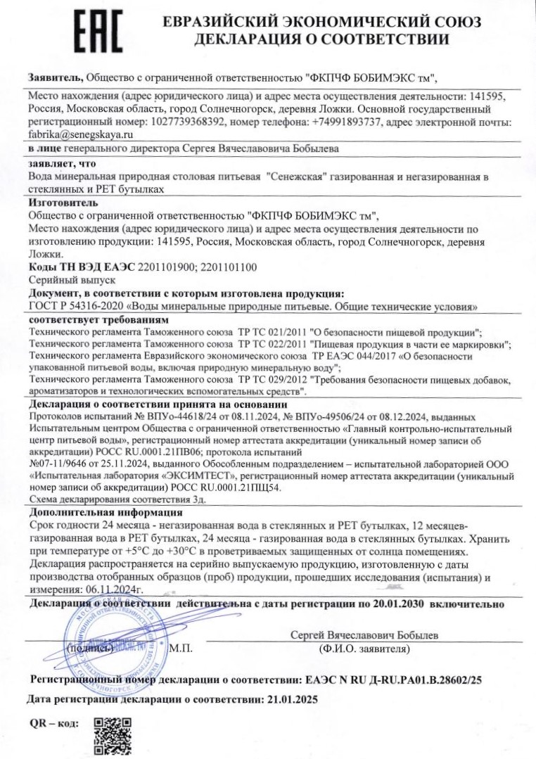 Натуральная природная вода Сенежская вкусная и безопасная. Она подходит для ежедневного употребления. Для организма важно покрыть потребность в чистой питьевой воде. При этом необходимо, чтобы она была вкусная, безопасная и высококачественная. Сенежская отвечает всем этим критериям. На этикетке вы найдете информацию о том, что в воде содержится фтор в допустимых количествах. Сенежская богата магнием и кальцием, при регулярном употреблении она позволяет восполнить уровень этих микроэлементов в организме.