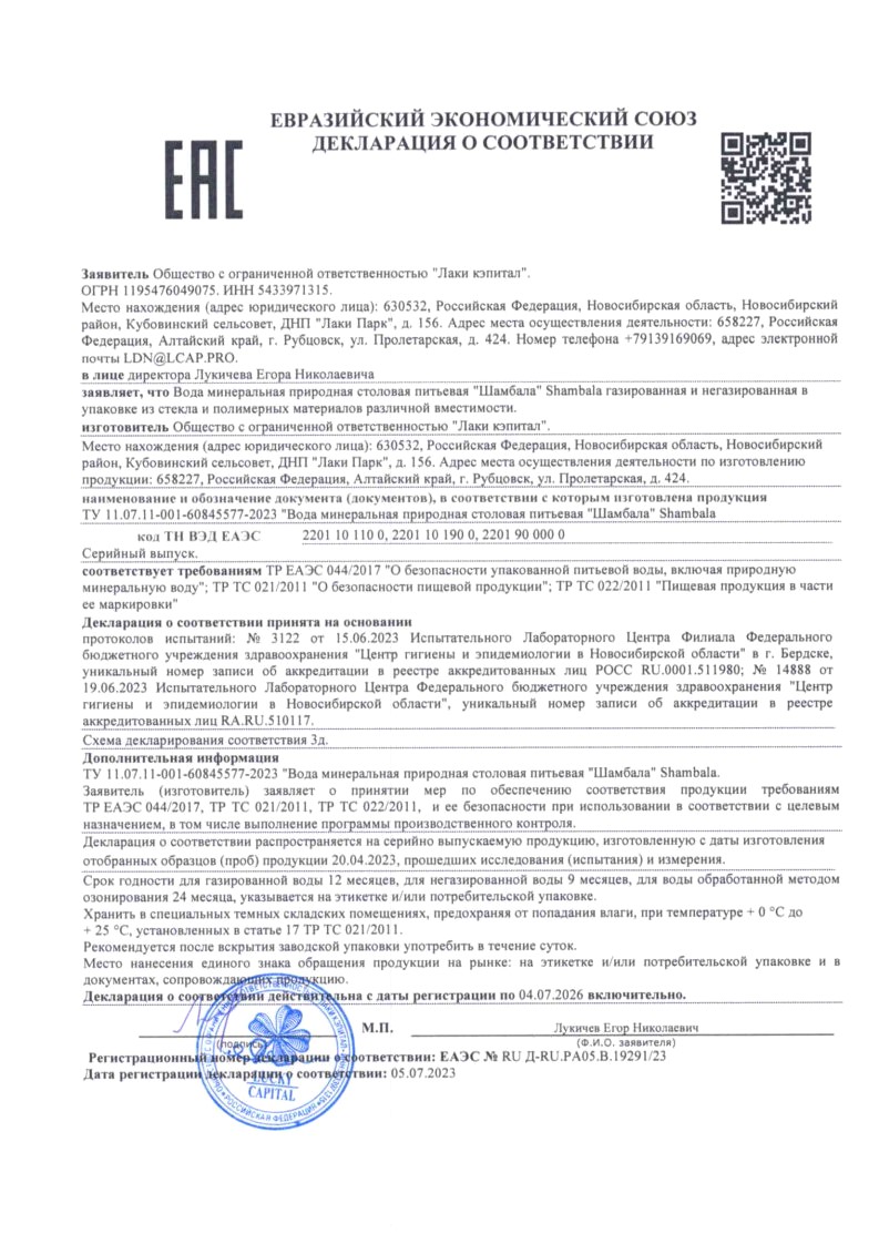 «Шамбала» - природная минеральная вода из источника в предгорьях Алтая.