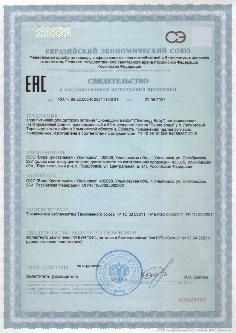 Если грудной ребенок отказывается от воды, причиной может быть её качество. От качества воды зависит жизнь Вашего ребенка, поэтому берите воду только у проверенных производителей. Для новорожденного малыша безопасность употребляемого продукта стоит на первом месте, слишком слаб и беззащитен младенец в первые месяцы своей жизни. «SiENERGY BABY» соответствует всем требованиям безопасности. Контроль качества воды «SiENERGY BABY» происходит на всех этапах розлива – от проверки качества воды в роднике до качества воды в бутылке. Внедренный на предприятии стандарт ISO 22000-2018 гарантирует качество и безопасность воды «SiENERGY BABY». Также бактериологическую безопасность воды помогает сохранять кремний в биологически активной форме, он блокирует размножение болезнетворных бактерий и вирусов.