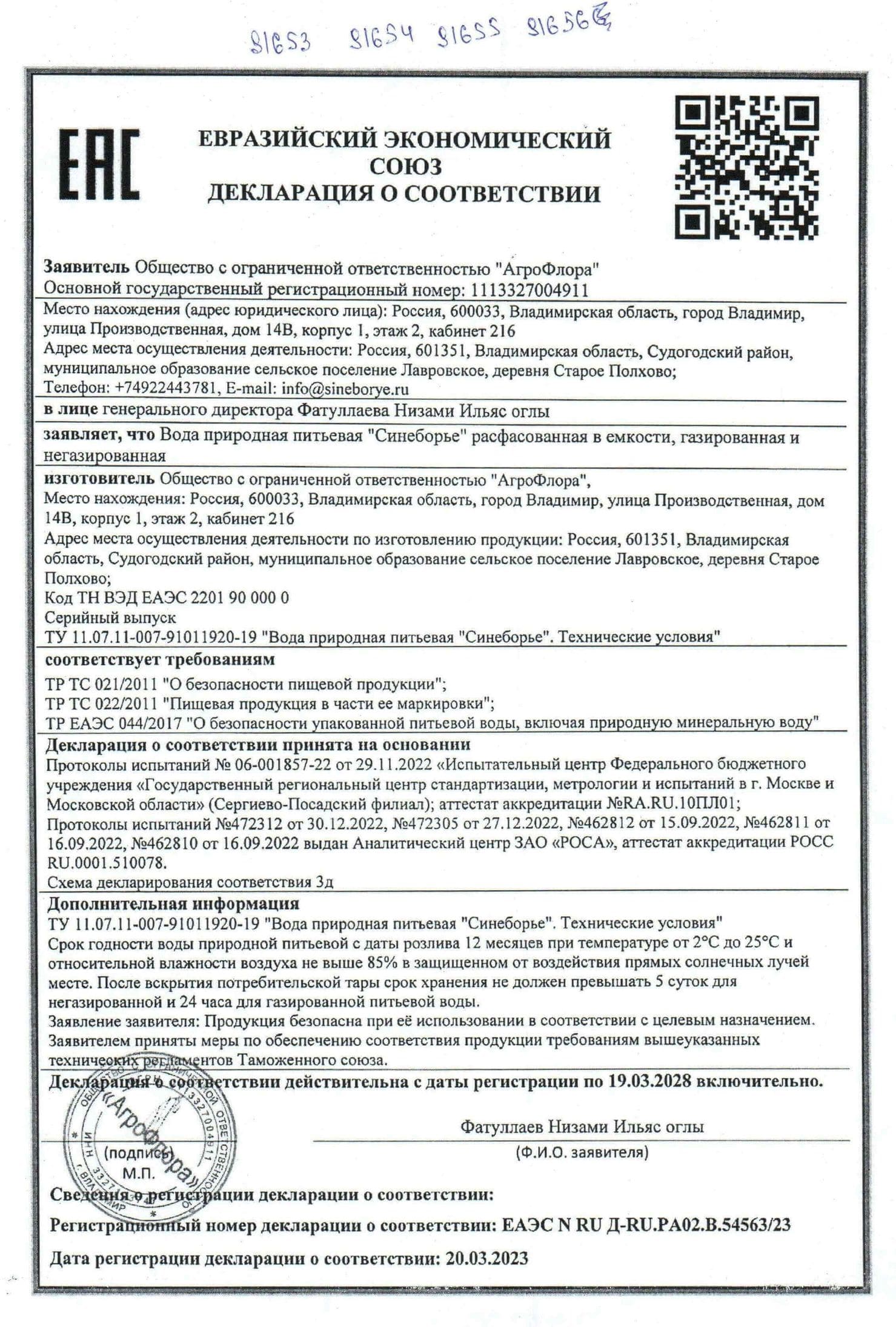 Вода «Синеборье» - это природная минеральная питьевая вода, поднятая на поверхность с глубин максимально защищенных самой природой пластов земли – вода первозданной природной чистоты.