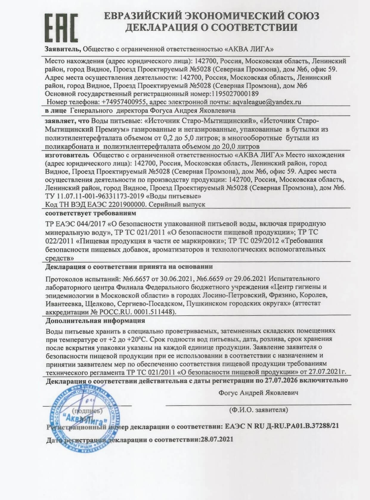 Природная вода «Старо-Мытищинский источник» сохраняет свои природные вкус и свежесть.