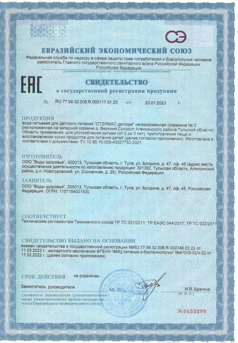 Питьевая вода «Стэлмас Детская» отвечает самым строгим требованиям безопасности: