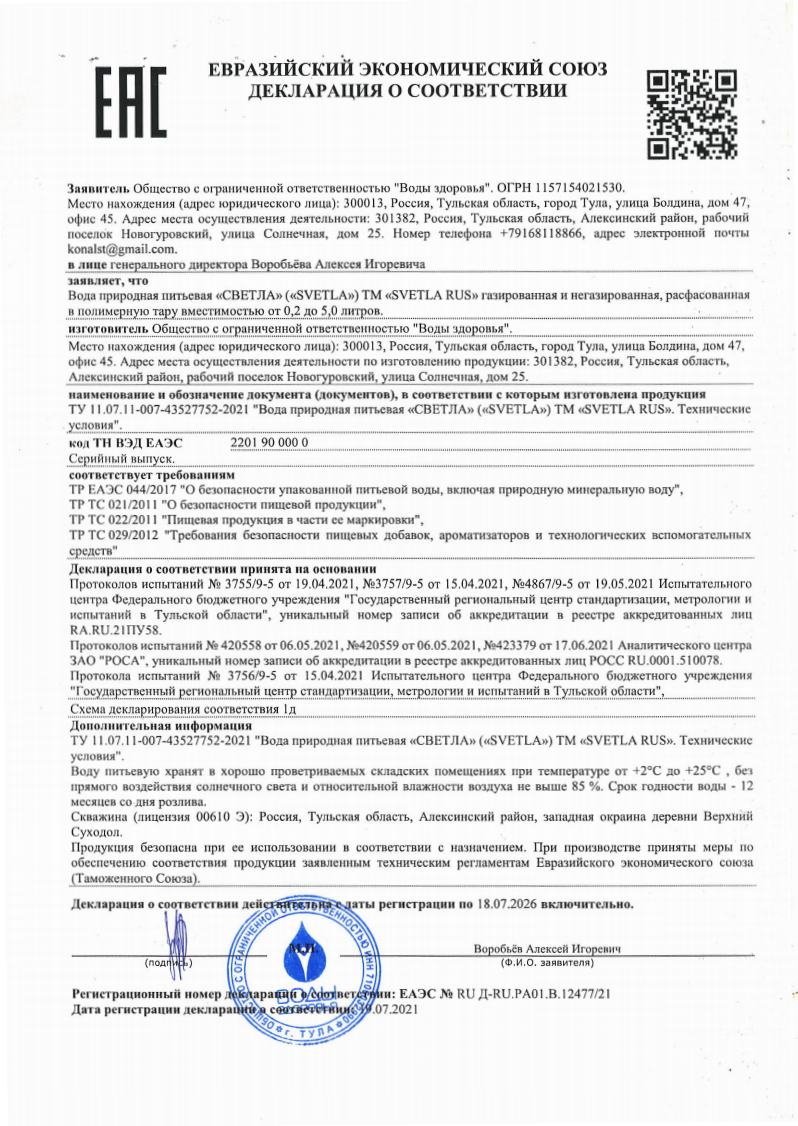 Последние исследования показали, что вода "Svetla":