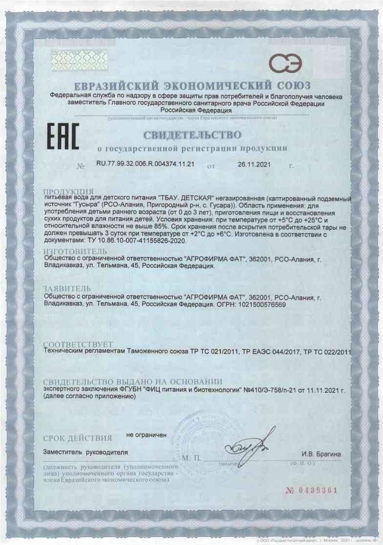 Родниковая вода «Тбау Детская» отличается чистейшим мягким вкусом. Подходит для питья и приготовления пищи детям, начиная с момента рождения, а также взрослым. Рекомендована заключением №12-5/329 от 07.07.15 «НИИ экологии человека и гигиены окружающей среды имени А.Н.Сысина» Минздрава России.