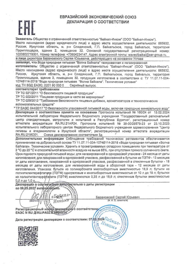 Уникальная байкальская вода «Волна Байкала» добывается на озере Байкал из артезианской линзы образованной сочетанием воды из озера Байкал и талой воды ледников Саянских гор (хребет Хамар-Дабан).