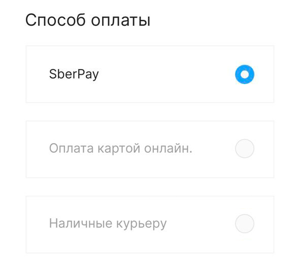 1. На экране оформления заказа в разделе Способ оплаты выберите SberPay.